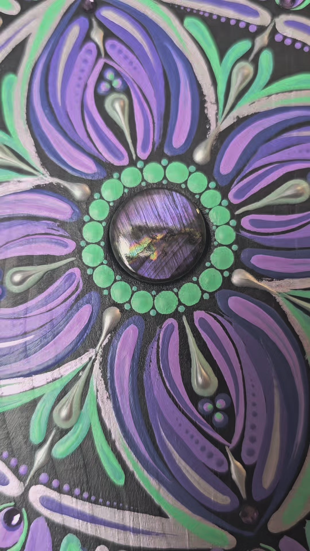 I inlaid a cabochon of labradorite with purple flash in the center.
