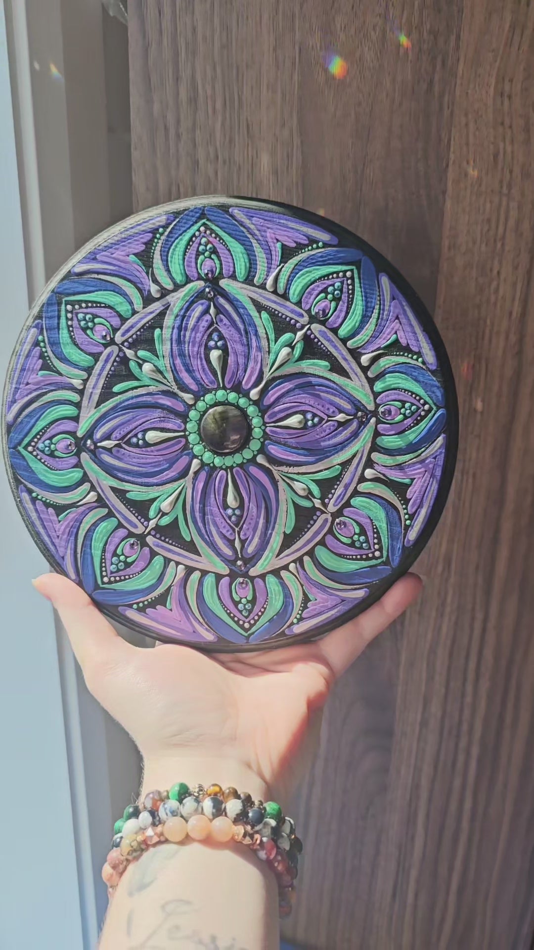 Mandala ~ 8" on pine wood.